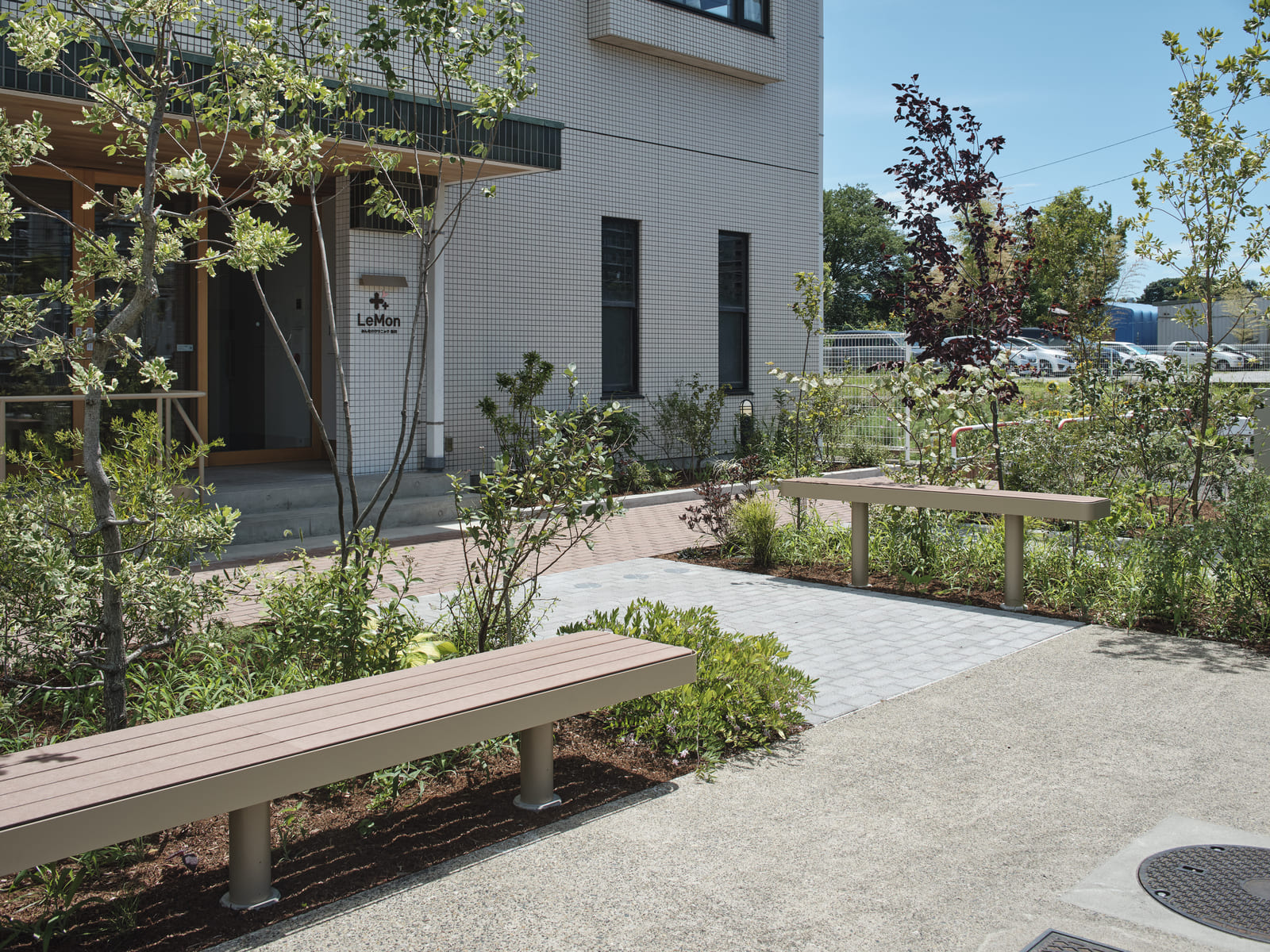 「外構と植栽は大変好評で、実のなったブルーベリーをきっかけに地域の方との交流も生まれています。クリニックと大柏川沿いの生態系や散策する人々と緩やかにつながる居場所となっています。」との声もいただき、自然と人がつながる心地よい空間となりました。