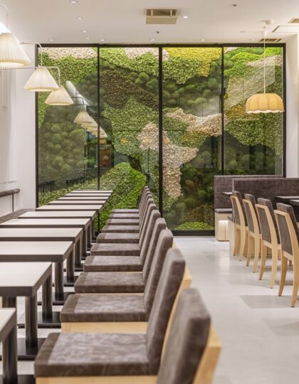 モスバーガー様が掲げる「モスしかできないことしよう」という想い。心と身体にやさしいおいしさ、自然との共生、そして愛情が込められた店舗づくり。