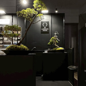 盆栽のレンタルサービス「BONKEI」の新作を、BAMBOO EXPO24 にて初展示しました。現代のインテリアにも自然と馴染むスタイルの盆栽で、今回は『水』を用いた新たなBONKEI。多くの反響をいただきました。
