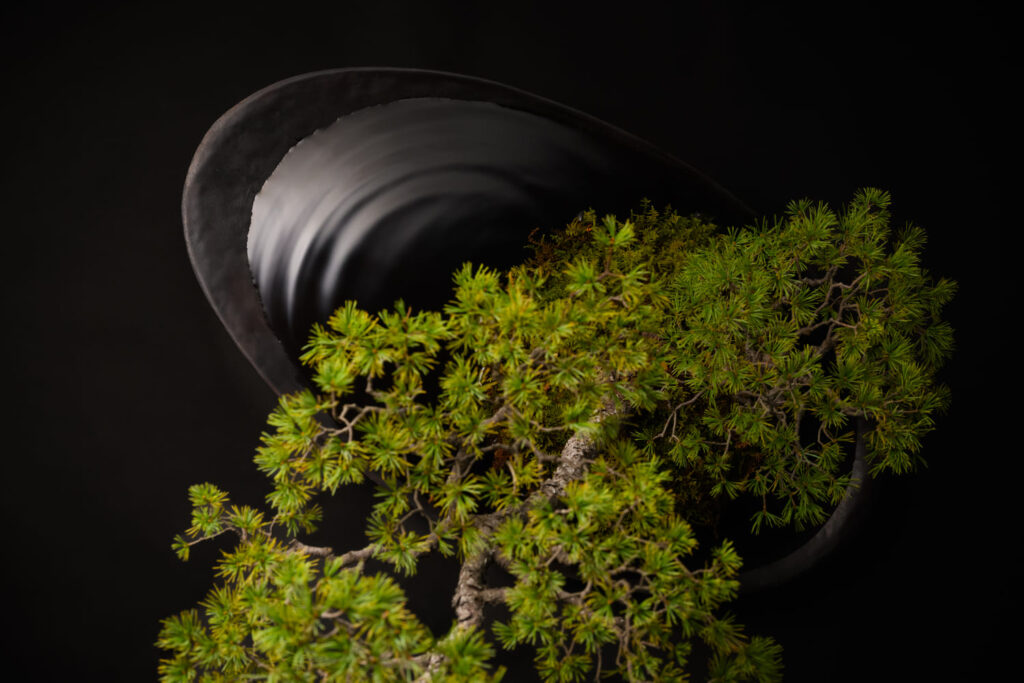 従来の古風な印象の盆栽とは違い、現代のインテリアにも自然と馴染むスタイルとするため、器は、弊社デザインのオリジナルのものです。